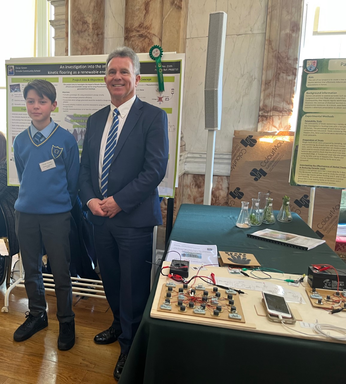 On Wednesday 22nd March, Oscar Green (1A7) represented KCS at the 'Science for Development' showcase with his project 'An investigation into the impact of Kinetic Flooring as a renewable energy source for schools'. Oscar's commitment to this project had previously led him to be highly commended at this year's Young Scientist Competition.
